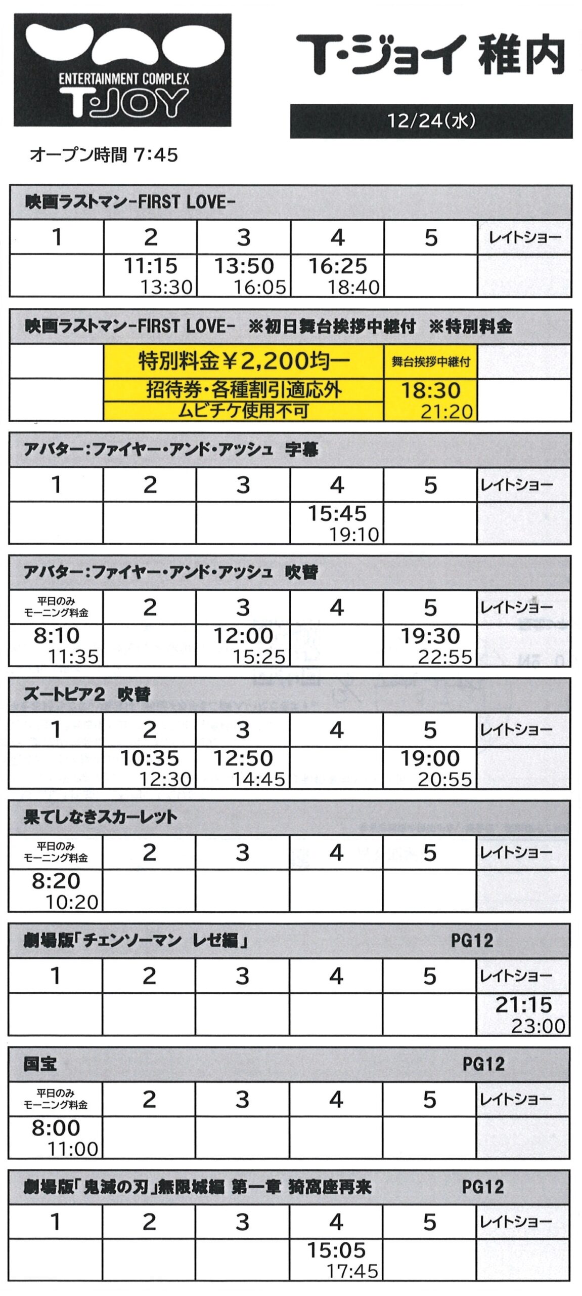 ・北海道の条例に従い、18歳未満の方や高校生の方は、上映終了時間が23時を過ぎる上映回には保護者同伴でもご入場いただけません。