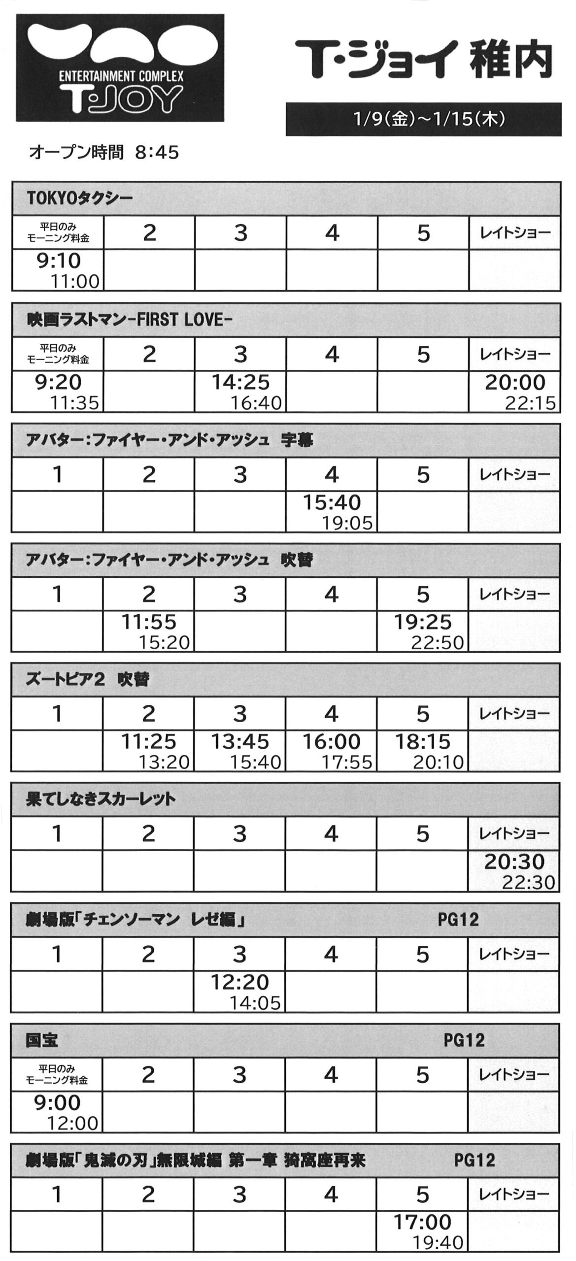 スマートフォンの方はスケジュール表を横にスクロールしてご覧ください。